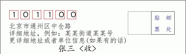 说明:以上列表中的邮件编码101100为北京市通州区中仓路的标准邮编,适用于大部分普通邮寄场景。