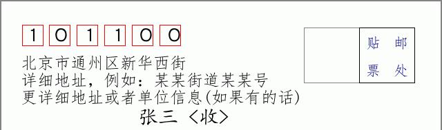说明:以上列表中的邮件编码101100为北京市通州区新华西街的标准邮编,适用于大部分普通邮寄场景。